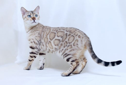 Snow Bengal have aclighter,creamy or pale coat color with striking blue or aqua eyes. They offer a softer and more delicate look compared to traditional Bengals.